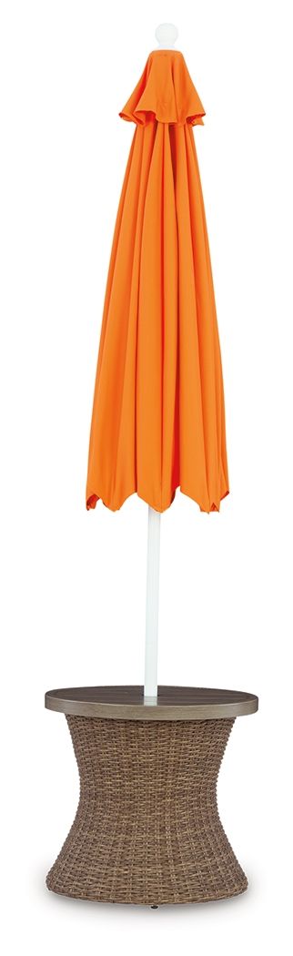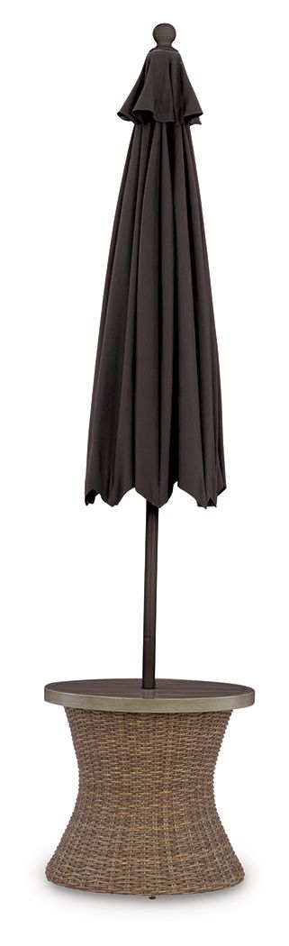 Laguna Heights - Round End Table With Umbrella Option - Beige